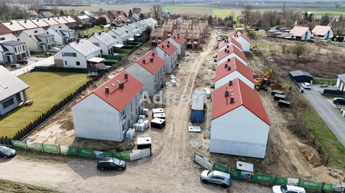Stan deweloperski całkowite wykończenie z zewnątrz: budynki ocieplone ( grafit 18cm) z dwoma miejscami parkingowymi, elewacją zewnętrzną, stolarką ( okna trzy szybowe profil - salamanter, drzwi wejściowe) tył i boki ogrodzenie, wew. tynki maszynowe gipsowe, wszystkie instalacje, posadzki całość do indywidualnego wykończenia.