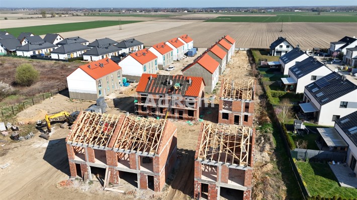 Stan deweloperski całkowite wykończenie z zewnątrz: budynki ocieplone ( grafit 18cm) z dwoma miejscami parkingowymi, elewacją zewnętrzną, stolarką ( okna trzy szybowe profil - salamanter, drzwi wejściowe) tył i boki ogrodzenie, wew. tynki maszynowe gipsowe, wszystkie instalacje, posadzki całość do indywidualnego wykończenia.