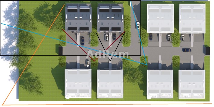 Pozostała powierzchnia działki niezabudowana istnieje możliwość zabudowy o kolejne budynki ( cztery budynki dwulokalowe ) .