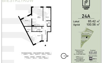 Prezentowane mieszkanie o pow. 85,42 mkw, jest jednopoziomowe ( parter ) , składa sie z czterech pokoi ( trzy sypialnie) w tym dużego salonu z aneksem kuchennym, jednej łazienki, garderoby, pom. gospodarczego oraz ogrodu o pow. ok. 100,56 mkw.