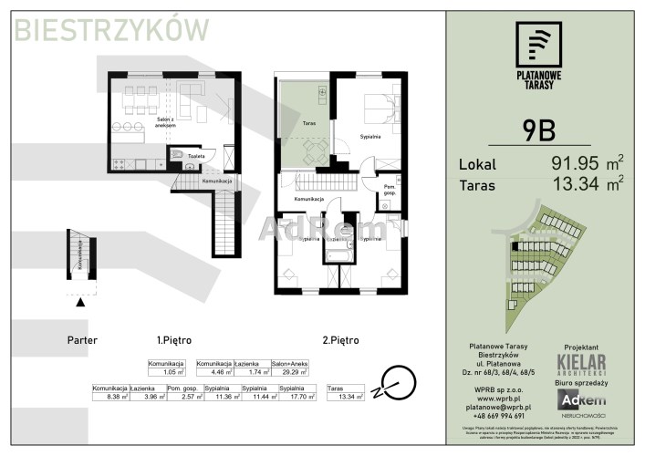Do mieszkań usytuowanych na parterze przynależą ogrody, do mieszkań na piętrze duże i przestronne tarasy .