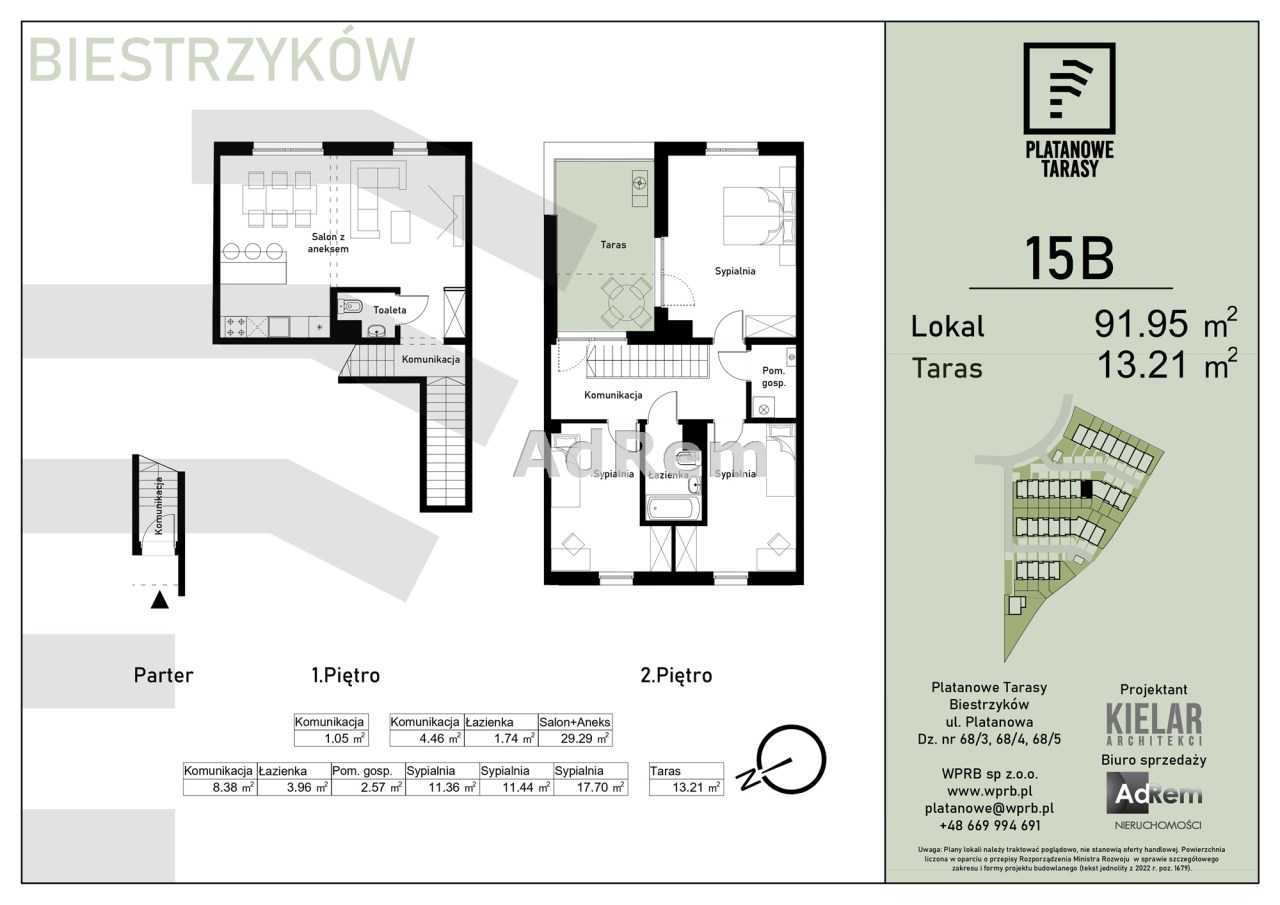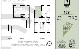 Prezentowane mieszkanie o pow. 91,95 mkw, jest dwukondygnacyjne, składa sie z czterech pokoi ( trzy sypialnie) w tym dużego salonu z aneksem kuchennym, łazienki, toalety oraz tarasu o pow. ok. 13,21 mkw.