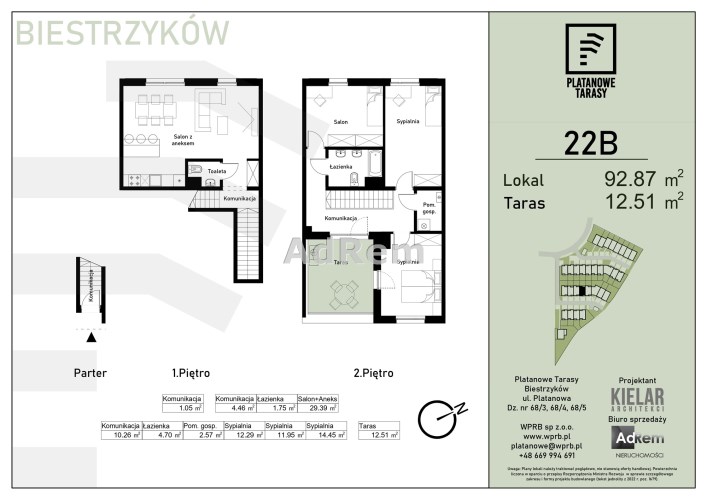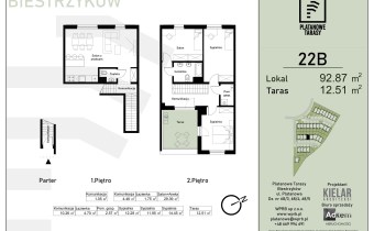 Prezentowane mieszkanie o pow. 91,95 mkw, jest dwukondygnacyjne,  składa sie z czterech pokoi ( trzy sypialnie) w tym dużego salonu z aneksem kuchennym, łazienki, toalety oraz tarasu o pow. ok. 13,34mkw.