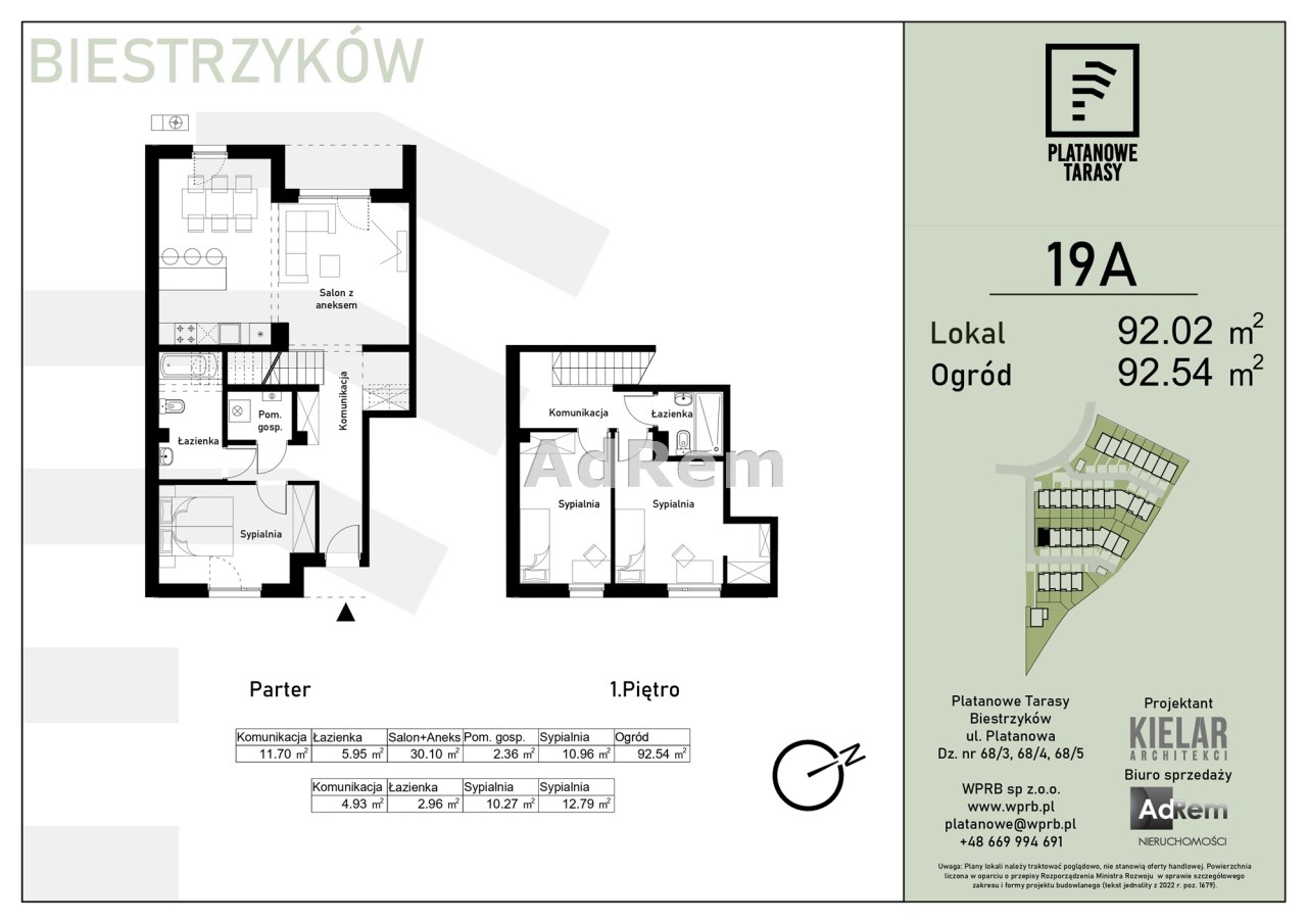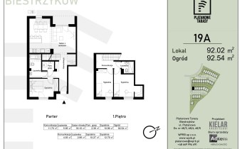 Prezentowane mieszkanie o pow. 92,02 mkw, jest dwukondygnacyjne ( parter i piętro ) ,  składa sie z czterech pokoi ( trzy sypialnie) w tym dużego salonu z aneksem kuchennym, dwóch łazienek oraz ogrodu o pow. ok. 92,54 mkw.