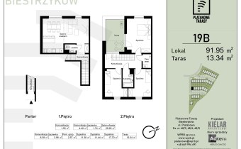 Prezentowane mieszkanie o pow. 92,87 mkw, jest dwukondygnacyjne, składa sie z czterech pokoi ( trzy sypialnie) w tym dużego salonu z aneksem kuchennym, łazienki, toalety oraz tarasu o pow. ok. 12,51mkw.