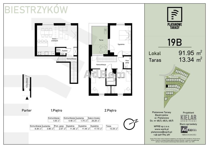 Do mieszkań usytuowanych na parterze przynależą ogrody, do mieszkań na piętrze duże i przestronne tarasy .