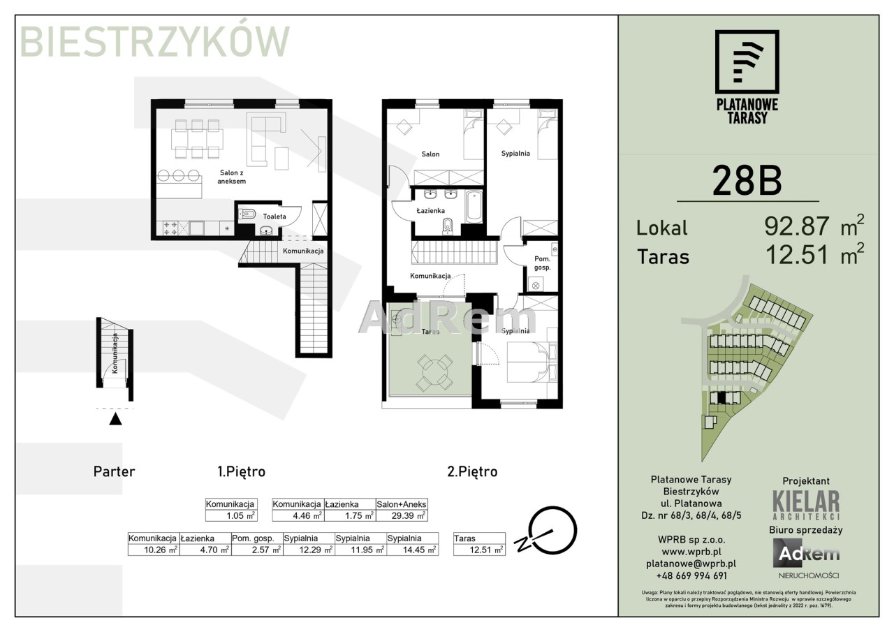 Prezentowane mieszkanie o pow. 92,87 mkw, jest dwukondygnacyjne, składa sie z czterech pokoi ( trzy sypialnie) w tym dużego salonu z aneksem kuchennym, łazienki, toalety oraz tarasu o pow. ok. 12,51mkw.