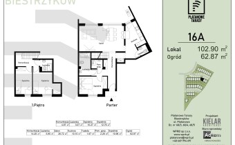 Prezentowane mieszkanie o pow. 102.90 mkw, jest dwukondygnacyjne ( parter i piętro ), składa sie z czterech pokoi ( trzy sypialnie) w tym dużego salonu, jasnej ( z oknem ) kuchni, dwóch łazienek, jednej toalety, pomieszczenia gospodarczego oraz ogrodu o pow. ok. 62,87 mkw.